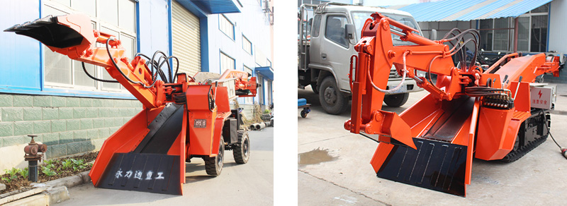 小型扒渣機(jī)采用挖機(jī)底盤原理設(shè)計(jì)制造,采用實(shí)心輪胎,雙行走馬達(dá),雙油泵輸出,轉(zhuǎn)彎半徑更小,可實(shí)現(xiàn)360度原地旋轉(zhuǎn),扒渣機(jī)為四輪驅(qū)動(dòng),推動(dòng)力大、扒取范圍廣、全斷面裝巖、不需要人工輔助清理工作面;采用模塊式生產(chǎn),方便下井安裝作業(yè),車身小、結(jié)構(gòu)緊湊、重心低、機(jī)動(dòng)靈活、工作穩(wěn)定是狹窄面不可替代的機(jī)型。